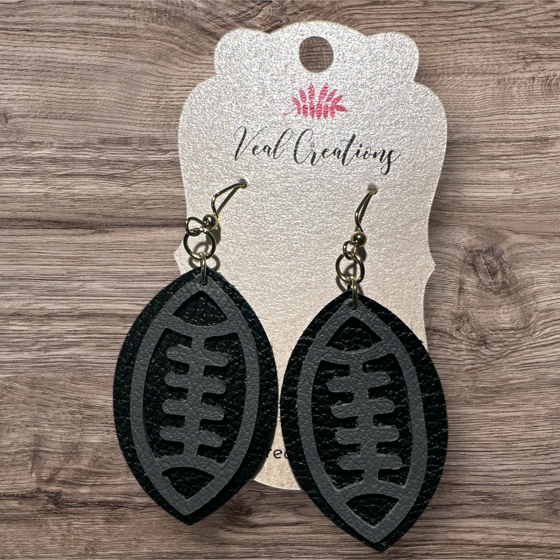 Get your Die-Cut Leather Football Earrings today and show off your love for the game in style!