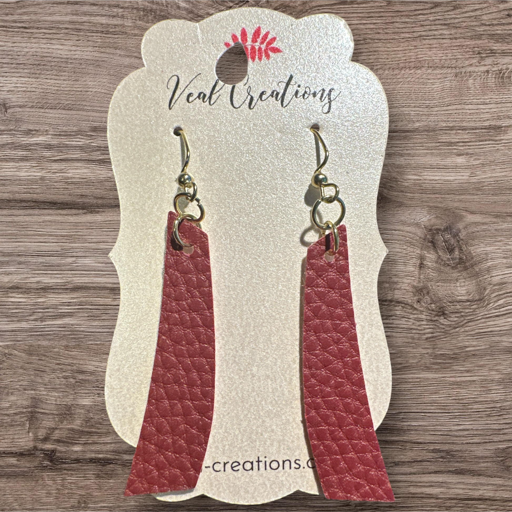 Upgrade your accessories with these Dark Red/Maroon Slanted Bar Leather Earrings for a chic, fashion-forward touch!