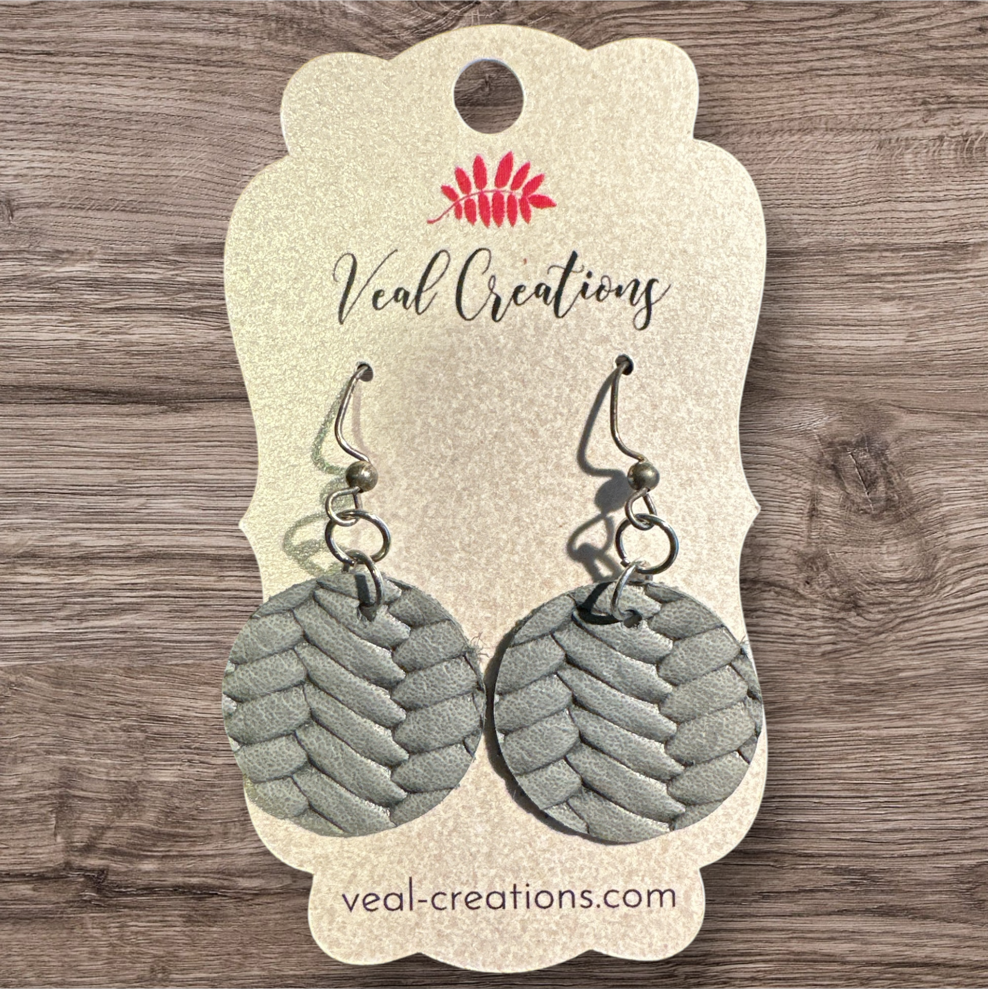 Upgrade your jewelry collection with these Round Gray Braided Leather Earrings today!