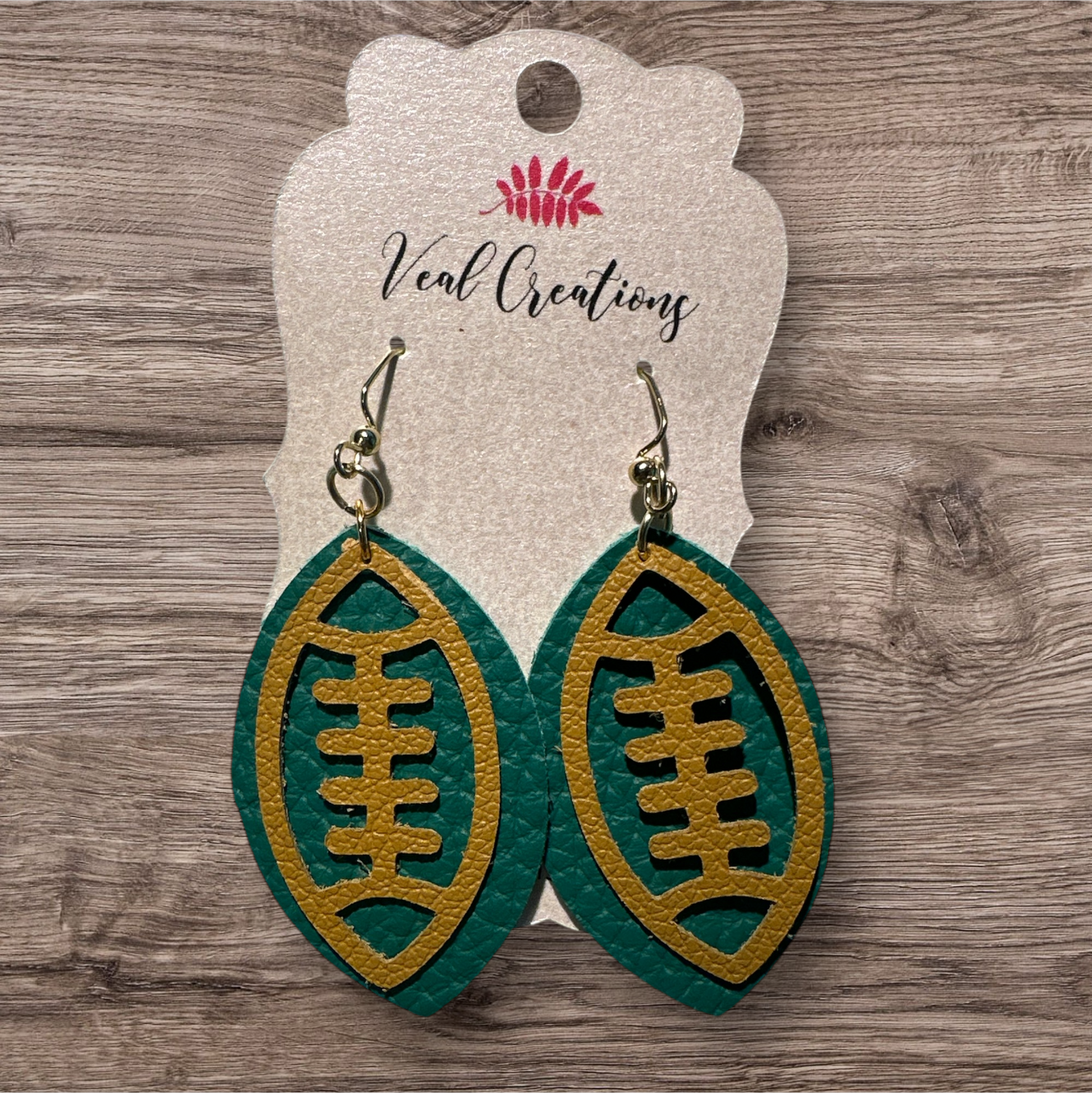 Green & Gold Die Cut Football Leather Earrings