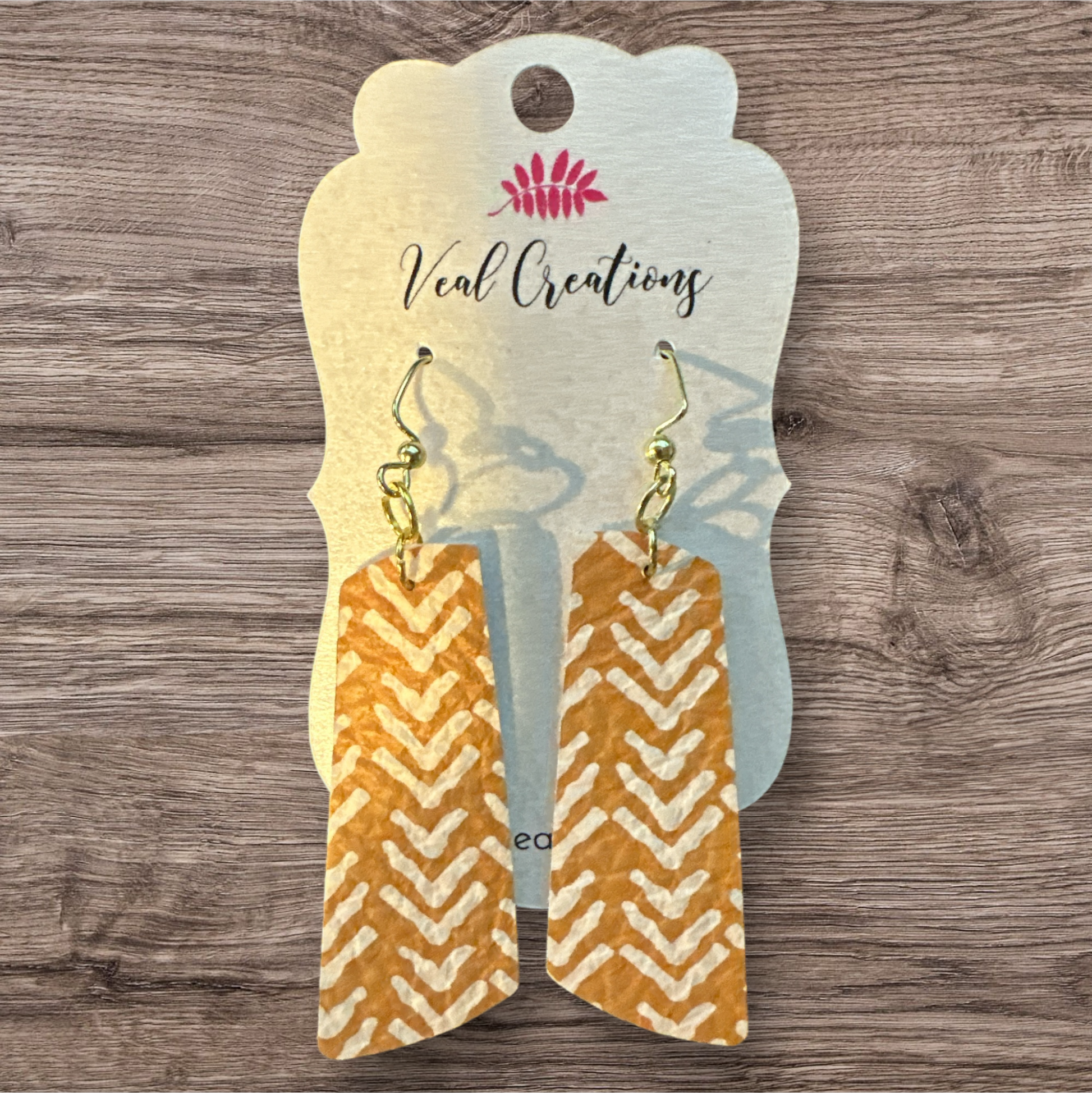Add a pop of color and style with these Chevron Orange & White Bar Earrings! Featuring a bold chevron pattern in vibrant orange and white, these earrings are the perfect accessory for adding a fun, trendy touch to any outfit. Whether you're dressing up for a special event or adding flair to your everyday look, these lightweight, durable earrings are sure to stand out.