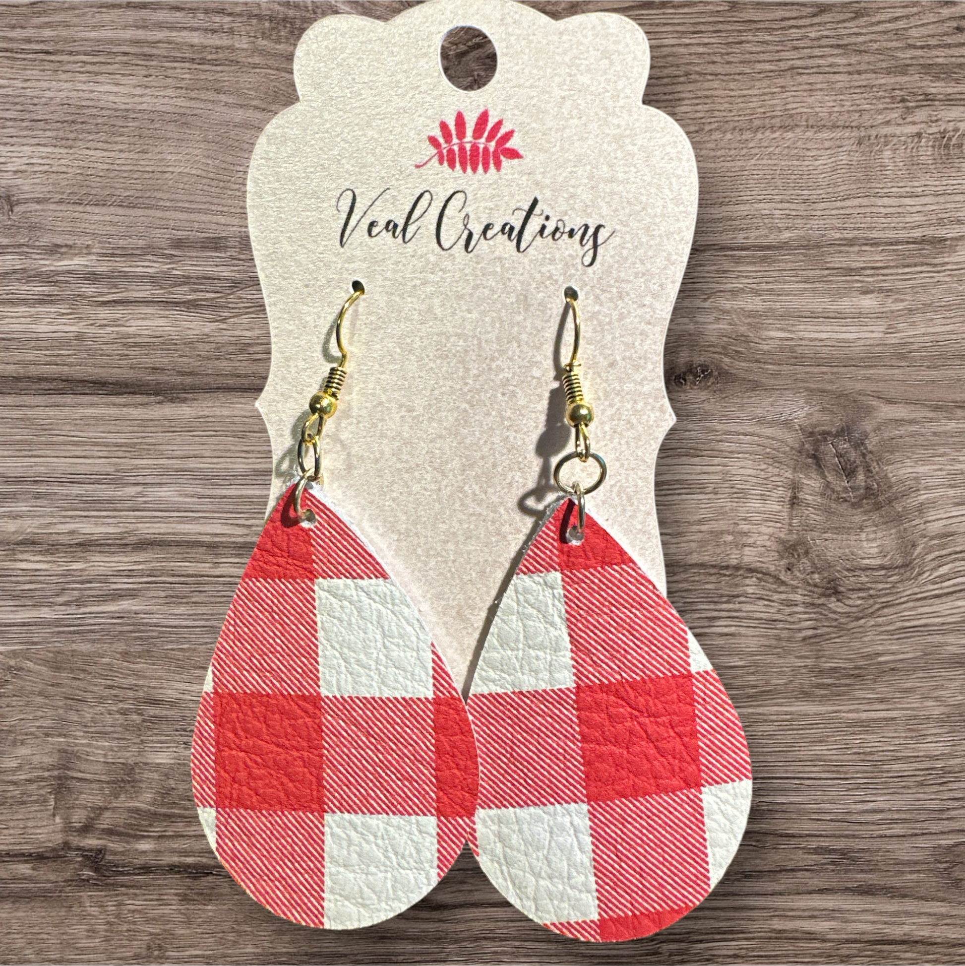 Get your Red & White Plaid Teardrop Leather Earrings today and add a cozy-chic vibe to your wardrobe!