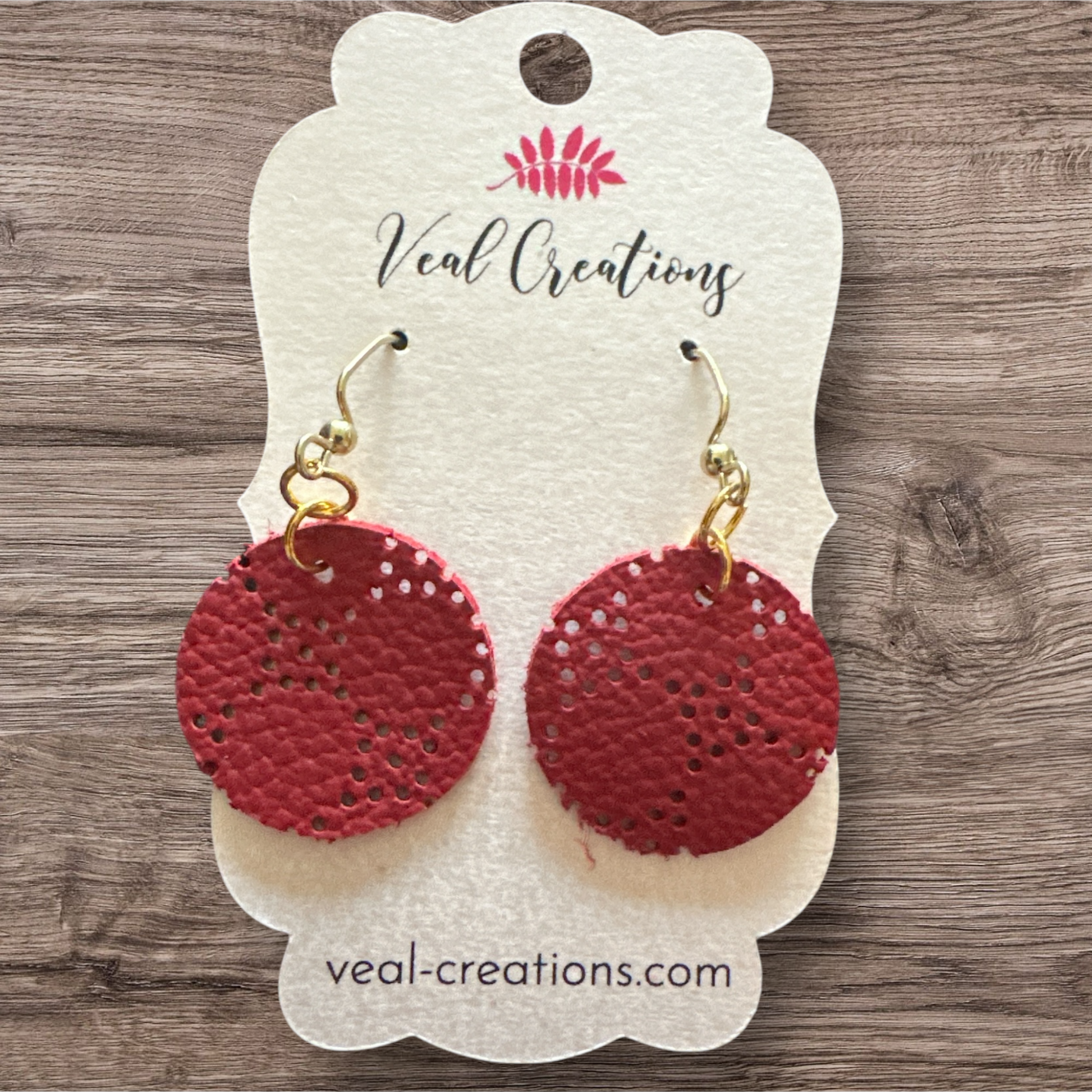 Upgrade your jewelry collection with these Round Red Leather Earrings today!