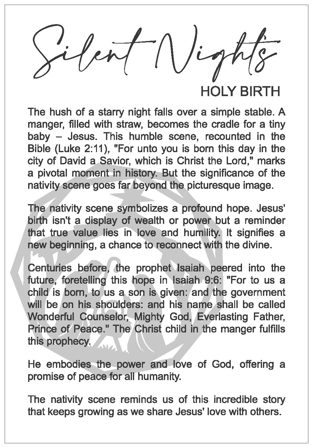 Celebrate the sacred wonder of the first Christmas with our Silent Night’s Holy Birth ornament — a beautifully designed digital cut file that honors the holy nativity and the peaceful night when Christ was born. Whether you craft it as a hanging ornament, car charm, or keepsake, this design is a meaningful way to reflect on the miracle of Jesus’ birth.