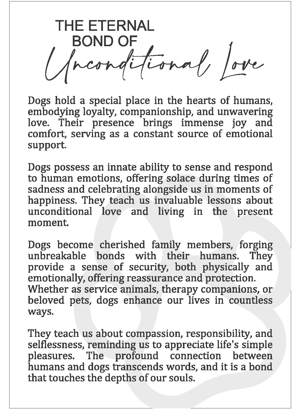 Celebrate the forever love you share with your furry companion through our Eternal Bond of Unconditional Love ornament — a deeply meaningful keepsake that honors the unbreakable bond between you and your pet. Whether hung on a holiday tree, displayed in your home, or used as a car charm, this ornament serves as a gentle daily reminder of that enduring connection.